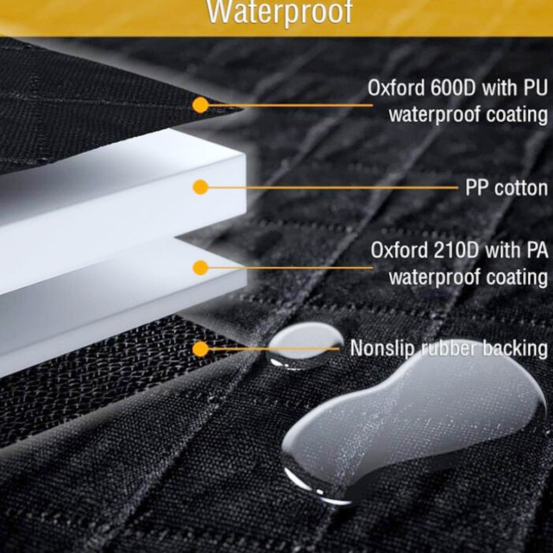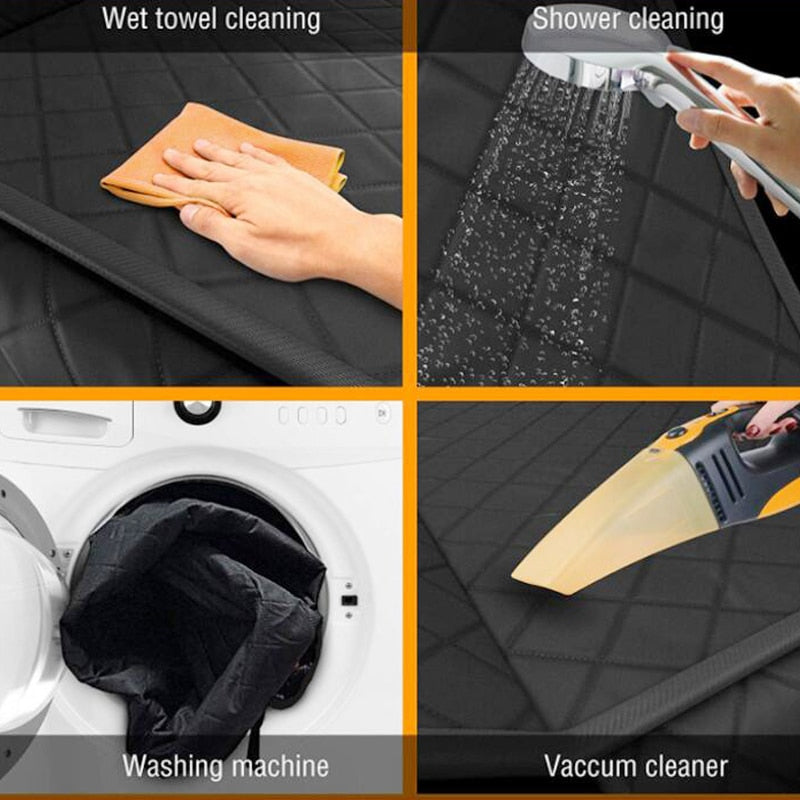 Keep your car clean while transporting your furry friend with this pet rear car mat! Made of durable Oxford cloth and lined with soft cotton, this mat prevents hair and dirt from getting all over your seats. The mesh backing prevents slipping and the PVC waterproof coating keeps accidents from seeping through. Easily attach this mat to your car seat belt with the included snaps, and when you're done using it, simply zip it up into its own pocket-sized bag.